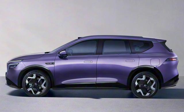 侧面设计并不算特别简约,拥有多腰线设计,侧裙上方采用内凹式设计,增添了车身的灵动气息,门把手用的是隐藏式设计,后排车窗下沿逐渐向后上方扬起,D柱下方有一条明显凸起的肌肉线条,和理想L6、零跑C16、东风奕派008等“简约风”的SUV相比,日产NX8侧面显得更加年轻、运动。